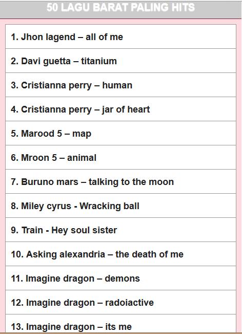50 Kuampulan lagu barat paling hits ada di sini yang bisa kalian manfaatkan